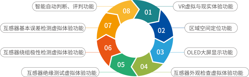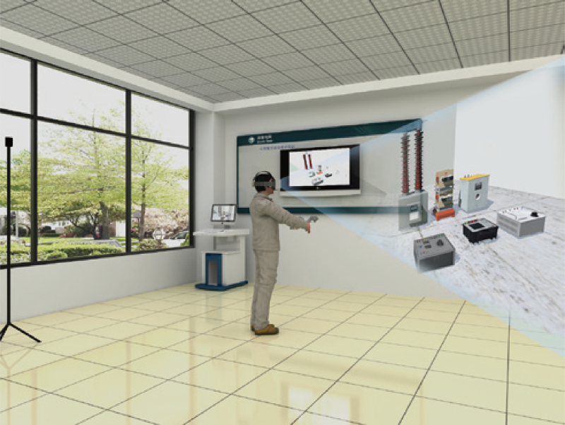互感器校验VR体验系统是虚拟现实技术在电力培训领域的创新性应用,该项目采用虚拟现实技术将互感器校 验的内容进行场景化的体验,以第一视角体验互感器校验的实训操作流程。该项目很大程度上推动了互感器 校验培训的现代化、标准化、科技化,真正实现智慧教学。