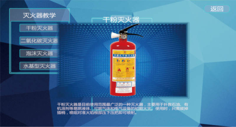 火灾虚拟体验VR实训系统是采用VR 虚拟技术,建立电力作业场景、办公环境、家庭环境等虚拟火灾场景,以 互动的形式培训考核学员在火灾环境下基础消防设施辨别能力、应急设备使用能力和应急逃生能力,避免火 灾应急逃生能力缺失,造成的人身伤亡事故。