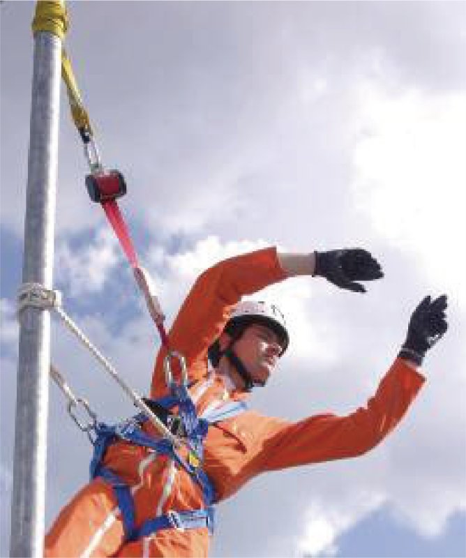 本项目在虚拟环境中模拟高空作业人员从高处坠落后发生安全带吊挂事故,悬停在半空中等待救援的场景。施救 人员携带高空救援用品采用正确的施救方法将受困人员救回地面,训练学员高空救援的技能。
